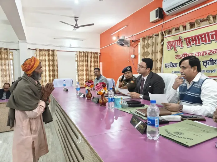 चकरनगर:- डीएम अवनीश राय व एसएसपी संजय वर्मा ने जनपद की तहसील चकरनगर, इटावा में आयोजित सम्पूर्ण समाधान दिवस/तहसील दिवस के अवसर पर जन शिकायतों को सुना और संबंधित अधिकारियों को गुणवत्तापूर्ण निस्तारण हेतु आवश्यक निर्देश दिए गए।