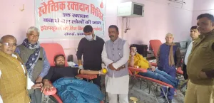 भरथना (रिपोर्ट- तनुज श्रीवास्तव, 9720063658)- चौ0 स्व0 शिवनाथ सिंह (दद्दा) की स्मृति में भारत विकास परिषद पांचाल (प्रान्त) स्वामी विवेकानन्द शाखा भरथना द्वारा उ0प्र0 आयुर्विज्ञान विश्वविद्यालय सैंफई के तत्वाधान में स्वैच्छिक रक्तदान शिविर का आयोजन आर्य श्यामा बालिका इण्टर कालेज में किया गया। जिसमें 40 लोगों ने रक्तदान करके जरूरतमन्दों को जीवनदान देने के लिए कदम बढाया।
