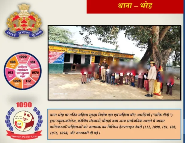 चकरनगर थाना भरेह पुलिस ने 5.0 अभियान के तहत ग्राम महुआ सुन्दा में छात्राओं, बालिकाओं और महिलाओं को महिला सुरक्षा, महिला संबंधी अपराधों से बचाव, साइबर अपराध और शासन से जारी हेल्प लाइन नंबरों की जानकारी देकर जागरूक किया।