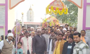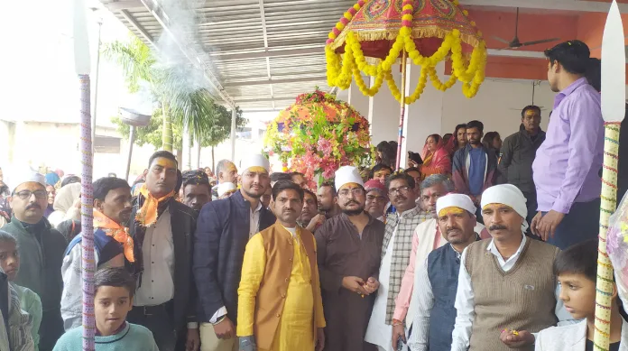 कस्बा के विधूना रोड स्थित शक्तिपीठ श्री बालरूप हनुमान जी महाराज हनुमान गढी (छोला मन्दिर) के प्रांगण में स्थापित श्री साँईधाम के 20वें साँई वार्षिकोत्सव के पावन अवसर पर विगत वर्षों की भाँति इस वर्ष भी श्री साँई बाबा की पालकी पदयात्रा छोला मन्दिर परिसर में भ्रमण को निकाली गई। पालकी भ्रमण के दौरान सैकडों महिला-पुरूष साँई भक्तों ने बाबा की पालकी को कन्धा देकर पूजा अर्चना कर सम्पूर्ण जगत के सर्वमनोरथ पूर्ण होने की कामना की। बाबा की पालकी का शुभारम्भ बुधवार की सुबह आचार्य द्वारा विधिवत वैदिक मंत्रोच्चारण के बीच सम्पन्न कराया गया। साथ ही मंगल स्नान व हवन पूजन अर्चन के उपरान्त भक्तों के दर्शनार्थ मन्दिर प्रांगण में भ्रमण को निकाली गई। ढोल नंगाडों की संगीतमयी ध्वनियों के साथ बाबा की पालकी श्री बालरूप हनुमान मन्दिर, शिव मन्दिर, श्री रामदरबार, राधाकृष्ण मन्दिर, माँ कैला देवी, दुर्गा देवी, श्री खाटूश्याम आदि सहित समूचे मन्दिर प्रांगण में भ्रमण करती हुई साँईधाम पहुँची। तदुपरान्त सांय छोला मन्दिर प्रांगण में आयोजित विशाल भण्डारे में सभी भक्तों ने बाबा का पूडी-सब्जी का प्रसाद ग्रहण कर आर्शीवाद लिया। पालकी में मौजूद भक्तजनों ने साँई बाबा के गगनभेदी जयघोषों से समूचा मन्दिर प्रांगण साँई की भक्ति से गुंजायमान कर दिया। पालकी के दौरान समिति अध्यक्ष रूपकिशोर गुप्ता (रूपे), प्रबन्धक राजू चौहान, राजेश चौहान, साँईमित्र मण्डल कार्यक्रम संयोजक डा0 अभिनव दुबे (छोटू), संजीव श्रीवास्तव, विकास दीक्षित (दीपू), डा0 अभिषेक दुबे, श्याम वर्मा, दीपू अवस्थी, रामजी श्रीवास्तव, दीपू चौहान, भरत श्रीवास्तव, राजू गुप्ता, हरिहर भदौरिया, अनिल पोरवाल, सनी श्रीवास्तव, गोपी अग्रवाल, डा0 सतेन्द्र यादव, बण्टी श्रीवास्तव, बबलू यादव, श्याम पाण्डेय, आविद अली सहित सैकडों समिति पदाधिकारियों के साथ महिलाओं व बच्चों की उपस्थिति उल्लेखनीय रही। फोटो-