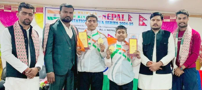 भरथना (रिपोर्ट- तनुज श्रीवास्तव, 9720063658)- संस्कृति इंटरनेशनल स्कूल के दो छात्रों आदित्य यादव कक्षा 9 और आर्यन यादव कक्षा 6 ने भारत-नेपाल अंतरराष्ट्रीय एथलेटिक्स चैंम्पियनशिप में शानदार प्रदर्शन कर संस्था को गौरवान्वित किया। आर्यन यादव ने 200 मीटर दौड़ में व आदित्य यादव ने 800 मीटर दौड़ में स्वर्ण पदक हासिल किया। छात्रों के शारीरिक प्रशिक्षण में संस्था के प्रशिक्षक पवन यादव का भी बड़ा योगदान रहा। छात्रों की सफलता से प्रफुल्लित संस्था निदेशक अंकित यादव व प्रधानाचार्य प्रियंका सिंह ने दोनों छात्रों को शुभकामनायें दी हैं।