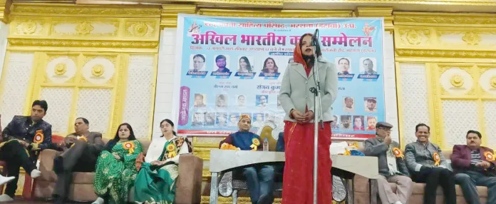 रविवार को कस्बा के मुहल्ला सरोजनी रोड स्थित जय वाटिका में सद्भावना साहित्य परिषद भरथना के तत्वाधान में अखिल भारतीय कवि सम्मेलन का आयोजन किया गया। जिसका शुभारम्भ बतौर अतिथि वरिष्ठ अधिवक्ता राजकुमार गुप्ता, पूर्व चैयरमैन नीता पोरवाल, एड0 रामपाल सिंह राठौर ने माँ सरस्वती के चित्र पर माल्यार्पण व दीप प्रज्जवलित करके किया। तदुपरान्त पूजा मिश्रा ने सरस्वती वन्दना पढकर कवि सम्मेलन को गति प्रदान की। वहीं डा0 पूनम चौहान ने श्रृंगार से सरावोर ‘‘बातें हैं किसी और से दिल मेें है कोई और, प्रीति की नई रीति ले आया है नया दौर व तलवार से खंजर से न बातों से मारिये, अगर मारना किसी को निगाहों से मारिये‘‘ पंक्तियां पढकर खूब वाहवाही लूटी तथा हरनाथ सिंह चौहान ने नारी सम्मान पर अपनी कविता सुनाई। साथ ही लवलेश यदुवंशी ने ‘‘अयोध्या में बना मन्दिर‘‘ पढकर मर्यादा पुरूषोत्तम भगवान श्रीराम को नमन किया। के0के0 अग्निहोत्री ने कसम खाने वालों की संख्या बढ जायेगी व कुमार सूरज ने सब सलामत रहे ये दुआ कीजिये पढकर तालियां बटोरी। साथ ही नीरज पाण्डेय, डा0 एस0के0 श्याम, पूजा मिश्रा ने भी अपनी-अपनी पंक्तियों से साहित्यिक यात्रा करवायी। इस दौरान अरविन्द पोरवाल, रामशंकर वर्मा, शिवपाल सिंह चौहान, रघुराज सिंह कुशवाह, रामनरेश पोरवाल, अनिल श्रीवास्तव, कृष्णपाल सिंह राठौर, श्रीकृष्ण पोरवाल, ब्रहमप्रकाश श्रीवास्तव, महेश मंगल, मनोज सक्सेना, सुभाष श्रीवास्तव, शिवकुमार सक्सेना, देवेन्द्र यादव, असित पाल, विकास श्रीवास्तव, राजेन्द्र शुक्ला सहित सैकडों साहित्यप्रेमियों की उपस्थिति उल्लेखनीय रही।