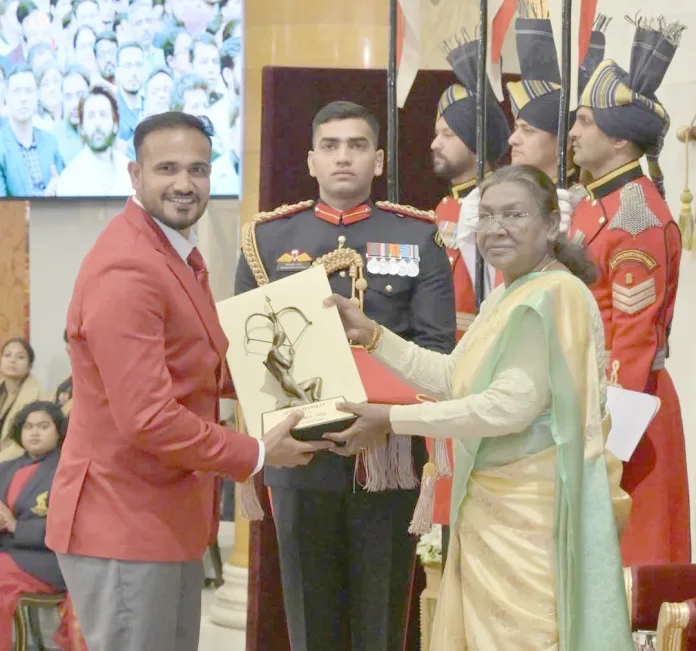 शुक्रवार को राष्ट्रपति भवन में आयोजित उक्त भव्य विशेष समारोह के दौरान युवा मामले एवं खेल मंत्रालय द्वारा राष्ट्रीय खेल पुरूस्कार 2024 के लिए घोषित खेल पुरूस्कारों के लिए 47 खिलाडियों को विभिन्न पुरूस्कारों से पुरूस्कृत किया गया। जिसमें इटावा के खिलाडी अजीत सिंह यादव को अर्जुन पुरूस्कार 2024 भेंटकर सम्मानित किया गया।