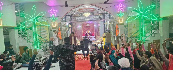 भरथना (रिपोर्ट- तनुज श्रीवास्तव, 9720063658)- ऊँ श्री पागलबाबा गंगासागर धाम मोढी पर पागल बाबा ह्रदय मन्दिर प्राण प्रतिष्ठा वार्षिकोत्सव शनिवार को बडी ही धूमधाम व श्रद्धाभाव के साथ मनाया गया। रंगबिरंगी आकर्षक साज-सज्जायुक्त मन्दिर में संगीतमयी ध्वनियों के बीच सम्पन्न हुए वार्षिकोत्सव में विभिन्न धार्मिक गीतों व भजनों पर सैकडों की संख्या में मौजूद श्रद्धालु महिला-पुरूष भक्तजनों ने तालियों की गडगडाहट के साथ लीलाधर पागलबाबा का गुणगान किया तथा इस दौरान 56 भोग से सुसज्जित दरबार में भोग प्रसाद चढाया गया। इस मौके पर कार्यक्रम संयोजक मुख्य न्यासी श्याम सुन्दर चौरसिया, आशू चौरसिया, आशू शुक्ला, श्रीकृष्ण अवस्थी, संजय मिश्रा सहित सैकडों महिला-पुरूष भक्तजनों की उपस्थिति उल्लेखनीय रही।