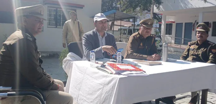 भरथना- माह के चतुर्थ शनिवार को स्थानीय थाना परिसर में तहसीलदार राजकुमार सिंह की अध्यक्षता में सम्पूर्ण थाना दिवस सम्पन्न हुआ। जिसमें राजस्व विभाग से सम्बन्धित पाँच फरियादियों ने अपने-अपने प्रार्थना पत्र सौंपकर जल्द निस्तारण की गुहार लगायी। जिस पर सुनवाई करते हुए तहसीलदार ने सम्बन्धित क्षेत्रीय लेखपालों को उक्त प्रार्थना पत्र सौंपकर जल्द निस्तारण के लिए निर्देशित किया। किन्तु एक भी प्रार्थना पत्र का मौके पर निस्तारण नहीं हो सका। थाना दिवस के दौरान प्रभारी निरीक्षक देवेन्द्र सिंह सहित अन्य कर्मचारियों की उपस्थिति उल्लेखनीय रही।