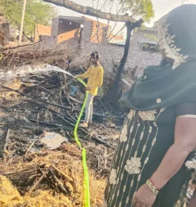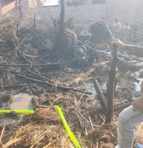 धधकती आग व तेज धुंआ देखकर अचानक ग्रामीणों द्वारा उसे फोन पर सूचना दी गई कि अज्ञात कारणों के चलते उसकी घासफूस की झोपडी में भीषण आग लग गई है। वैसे ही आनन-फानन में हम लोग घटनास्थल अपने घर पर पहुँचे, इस बीच धधकती आग ने उसकी घर गृहस्थी का सारा सामान, इंजन, चारपाई, गेहूं, भूसा आदि जलाकर राख कर दिया। जबकि उसके जानवर बंगला के बाहर बंधे थे, जो पूर्णतया सुरक्षित हैं। बमुश्किल ग्रामीणों द्वारा समर सेविल आदि निजी संसाधनों से धधकती आग पर काबू पाया गया। घटना की सूचना से पुलिस व क्षेत्रीय लेखपाल को अवगत करा दिया गया है।