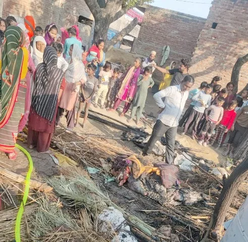 भरथना (रिपोर्ट- तनुज श्रीवास्तव, 9720063658)- पत्नी-बच्चों सहित उर्स का मेला देखने गये मुस्लिम परिवार के घर में उस समय हाहाकार के साथ कोहराम मच गया। जब अज्ञात कारणों के चलते उनके घासफूस के बंगले में लगी भीषण आग ने घर गृहस्थी का सारा सामान, अनाज सहित एक इंजन जलाकर राख कर दिया। बमुश्किल ग्रामीणों ने निजी संसाधनों से धधकती आग पर काबू पाया। ग्रामीणों द्वारा पुलिस व क्षेत्रीय लेखपाल को अग्निकाण्ड की सूचना दे दी गई है।