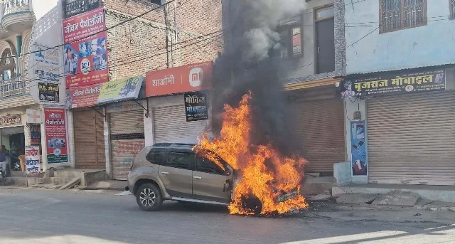 इटावा-कन्नौज हाईवे पर स्थित आजाद रोड, पोरवाल धर्मशाला के सामने शनिवार दोपहर ढाई बजे अचानक अफरा-तफरी मच गई, जब एक चलती कार में शॉर्ट सर्किट के कारण भीषण आग लग गई। भीड़भाड़ वाले इलाके में लगी इस आग से हाईवे पर जाम की स्थिति पैदा हो गई। सूचना मिलने पर फायर ब्रिगेड की टीम मौके पर पहुंची, लेकिन तब तक कार धू-धूकर जलकर राख हो चुकी थी।