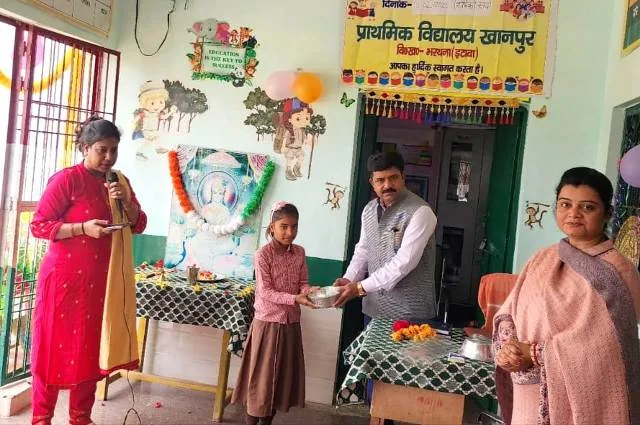 बीईओ सर्वेश कुमार सिंह ने अपने गोद लिए प्राथमिक विद्यालय खानपुरा में पहुंचकर कार्यक्रम की शोभा बढ़ाई। उन्होंने विद्यालय में शारदा संगोष्ठी एवं वार्षिकोत्सव का शुभारंभ किया और विद्यार्थियों को शिक्षा के प्रति प्रेरित किया। उन्होंने सौ प्रतिशत उपस्थिति वाले छात्र-छात्राओं के अभिभावकों को अंग वस्त्र भेंट कर सम्मानित किया और सभी अभिभावकों से अपने बच्चों को नियमित रूप से स्कूल भेजने की अपील की।