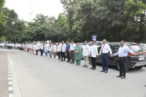 उत्तर प्रदेश आयुर्विज्ञान विश्वविद्यालय (यूपीयूएमएस), सैफई में पैथोलॉजी विभाग के तत्वावधान में आयोजित आत्महत्या रोकथाम जागरूकता सप्ताह का शुक्रवार को सफल समापन हुआ। इस अवसर पर विश्वविद्यालय के प्रशासनिक भवन के समक्ष विद्यार्थियों और शिक्षकों ने मानव श्रृंखला बनाकर “आत्महत्या पर नैरेटिव को बदलना” का सशक्त संदेश दिया।
