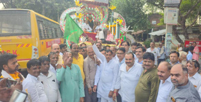 श्री रामलीला कमेटी (रजि0) भरथना के तत्वाधान् में सम्पन्न होने वाली 127वें रामलीला महोत्सव का शुक्रवार को भगवान भोलेनाथ की बारात के साथ शुभारम्भ हो गया। कस्बा के बकेवर रोड स्थित क्षेत्र पंचायत कार्यालय कुँअरा से बतौर मुख्य अतिथि पूर्व ब्लाक प्रमुख हरिओम यादव ने पूर्व जि0पं0स0 मनोज यादव बण्टी व कमेटी पदाधिकारियों के साथ हरी झण्डी दिखाकर शिव बारात को नगर भ्रमण हेतु रवाना किया। इससे पहले आगन्तुक अतिथियों ने मन्दिर परिसर में भगवान भोलेनाथ का वैदिक मंत्रोच्चारण के बीच पूजन अर्चन व आरती उतारी तथा कमेटी अध्यक्ष रोहित यादव, महामंत्री विनोद गोस्वामी, कोषाध्यक्ष नीलेश त्रिपाठी ने आगन्तुक अतिथियों का तिलक वन्दन व पट्टिका पहनाकर स्वागत सम्मान किया। बैण्ड बाजों व डीजे की समधुर ध्वनियों के बीच नगर भ्रमण को निकली भगवान शंकर की बारात में आकर्षक साज-सज्जायुक्त महाराज गजानन, वीर हनुमान, राधाकृष्ण, माता सरस्वती, नन्दी महाराज, राम दरबार, साँई बाबा, महिषासुर मर्दनी माँ दुर्गा, खाटूश्याम, सोने की लंका, भगवान भोलेनाथ के विभिन्न स्वरूप आदि सहित करीब आधा सैकडा से अधिक इलैक्ट्रॉनिक झाँकियां आकर्षण का प्रमुख केन्द्र रहीं। वहीं काली मण्डल के कलाकारों के करतब व नृत्यों ने श्रद्धालु नगरवासियों व दर्शकों को रोमांचित कर दिया। भोलेनाथ की बारात कुंअरा से प्रारम्भ होकर राजागंज, मोतीगंज, तिलक रोड, बजाजा लाइन चौराहा, आजाद रोड, गिरधारीपुरा, सती मन्दिर, मण्डी रोड, पुराना भरथना, बालूगंज होते हुए जवाहर रोड, कृष्णा नगर से होकर न0 राजा स्थित हीरो एजेन्सी पर सम्पन्न हुई। बारात के दौरान विनोद यादव, रज्जन पोरवाल, सत्यप्रकाश यादव, विपिन यादव, अरविन्द भदौरिया, दीपक यादव, बृजपाल सिंह जादौन, रानू यादव, पवन यादव, रामऔतार गुप्ता, सुनील यादव सहित सैकडों कमेटी पदाधिकारियों व कार्यकर्ताओं की उपस्थिति उल्लेखनीय रही।