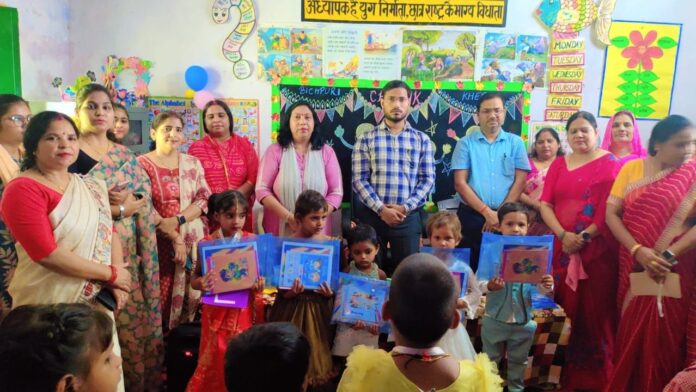 कार्यक्रम का शुभारंभ खंड शिक्षा अधिकारी गिरीश कुमार ने दीप प्रज्वलन कर किया। इस अवसर पर एसआरजी संजीव चतुर्वेदी और मीनाक्षी पांडे विशेष रूप से उपस्थित रहे। कार्यक्रम के दौरान निपुण बच्चों एवं शत-प्रतिशत उपस्थिति दर्ज करने वाले बच्चों को पुरस्कृत किया गया। साथ ही बाल वाटिका के बच्चों को स्टेशनरी सामग्री वितरित की गई।
