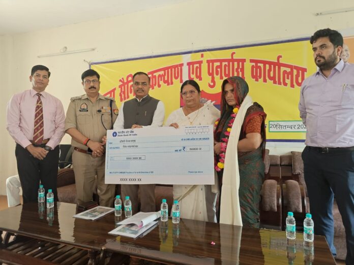 जम्मू कश्मीर के कुपवाड़ा में शहीद हुए सेना के जवान सूरज सिंह यादव के परिवार को आर्थिक सहायता प्रदान की गई। सैनिक कल्याण बोर्ड द्वारा आयोजित कार्यक्रम में सदर विधायक सरिता भदौरिया ने शहीद जवान की पत्नी को 35 लाख रुपए और पिता को 15 लाख रुपए का चेक भेंट किया।