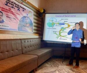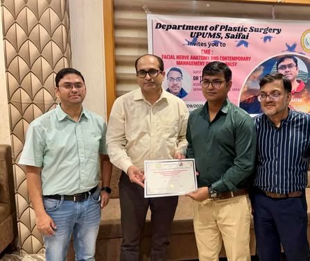 यूपीयूएमएस सैफई में प्लास्टिक सर्जरी विभाग द्वारा “फेसियल नर्व एनाटॉमी एंड कंटेम्पररी मैनेजमेंट ऑफ फेसियल पाल्सी” विषय पर एक अत्यंत रोचक एवं ज्ञानवर्धक सीएमई का सफल आयोजन किया गया। इस अवसर पर विभागाध्यक्ष डॉ. अतुल सक्सेना ने स्वागत भाषण देते हुए फेसियल रिइनिमेशन में प्लास्टिक सर्जरी की महत्वपूर्ण भूमिका पर प्रकाश डाला।