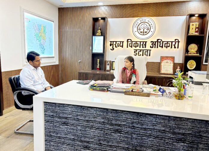 मिशन शक्ति कार्यक्रम के अन्तर्गत कस्तूरबा गांधी बालिका विद्यालय, इटावा की छात्रा कु0 सोम्या (कक्षा 7) को एक दिन के लिए प्रभारी मुख्य विकास अधिकारी (सीडीओ) बनाया गया। प्रभारी सीडीओ के रूप में जिम्मेदारी निभाते हुए सोम्या ने विकास कार्यों एवं शिक्षा व्यवस्था की जानकारी प्राप्त की। इस दौरान उन्होंने प्राथमिक एवं उच्च प्राथमिक विद्यालय सराय ऐसर का निरीक्षण किया।