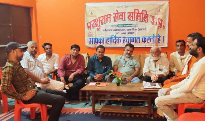 महेवा:- परशुराम सेवा समिति उ.प्र. की एक आवश्यक बैठक डमरू रेस्टोरेंट बहेड़ा रोड महेवा में संपन्न हुयी l बैठक की अध्यक्षता संरक्षक अरविंद तिवारी ने की तथा संचालन प्रदेश महामन्त्री विनय कुमार द्विवेदी ने किया l परशुराम सेवा समिति के प्रदेश अध्यक्ष डॉ.सुशील सम्राट ने कहा कि संगठन को सक्रियता प्रदान करने के लिए शीघ्र ही सदस्यता अभियान शुरू किया जायेगा l उन्होंने कहा कि सक्रिय लोगों को ही जिम्मेदारी दी जाएगी l