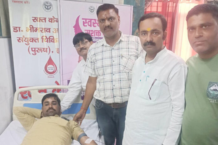 भरथना (रिपोर्ट- तनुज श्रीवास्तव, 9720063658)- भारतीय जनता पार्टी के सेवा पखवाड़ा के अन्तर्गत स्थानीय सामुदायिक स्वास्थ्य केन्द्र पर आयोजित रक्तदान शिविर का शुभारम्भ भाजपा मण्डल अध्यक्ष प्रथम ओमप्रताप सिंह बण्टू गौर ने किया।