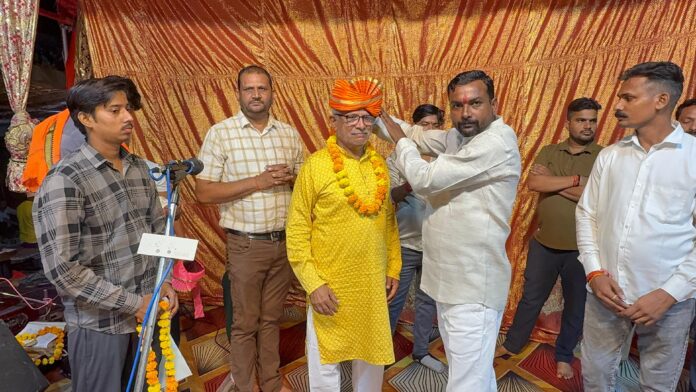 इससे पूर्व मुख्य अतिथि पूर्व बैंक मैनेजर कृष्णदेव त्रिपाठी व उनके पुत्र अनुराग त्रिपाठी का महोत्सव अध्यक्ष प्रताप सिंह पाल,महामंत्री संदीप पाल व कोषाध्यक्ष विशाल सोनी व पदाधिकारी जगरुप कुशवाहा,हिंमांशु यादव,गोलू मिश्रा,रामू यादव,हर्षित व पिंटू महाराज के द्वारा माल्यापर्ण करके व पंगडी पहनाकर व शाॅल उडाकर स्वागत किया गया।