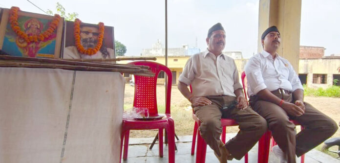 गुरूवार को कस्बा के मुहल्ला मोतीगंज स्थित सरस्वती शिशु मन्दिर पर राष्ट्रीय स्वयंसेवक संघ द्वारा राष्ट्र सेवा के 100 वर्ष पूर्ण होने पर स्वयंसेवकों ने शताब्दी वर्ष मनाया। सर्वप्रथम भारत माता के चित्र पर माल्यार्पण व ध्वज प्रणाम करके कार्यक्रम का शुभारम्भ किया गया। साथ ही स्वयंसेवकों ने शस्त्र पूजन भी किया। इस मौके पर सह जिला कार्यवाह अमित मिश्रा ने कहा कि आज विजयादशमी पर संघ ने राष्ट्रसेवा, समाजसेवा, धर्म तथा संस्कृति उत्थान में कार्य करते हुए 100 वर्ष की यात्रा पूर्ण कर ली है। साथ ही अन्य स्वयंसेवकों ने भी अपने-अपने सम्बोधन से संघ की नीतियों-रीतियों पर प्रकाश डाला। तदुपरान्त स्वयंसेवकों ने मुहल्ला मोतीगंज में लघु पथ संचलन भी किया। इस दौरान नगर संघचालक डा0 उमाशंकर गुप्ता, विभाग प्रचार प्रमुख विनोद यादव एड0, ओमप्रताप सिंह बण्टू गौर, हरिओम दुबे, अनूप जाटव, जयदीप त्रिपाठी, प्रमोद गुप्ता, विशाल, गौरव, शिवेन्द्र, देवांशु, रजत, शिवम, गौरव तिवारी, भरत, अरूण बघेल, पंकज दुबे, हरियोगेन्द्र तिवारी, नीलू पाण्डेय, अटल कौशल, आनन्द कौशल सहित कई स्वयंसेवकों की उपस्थिति उल्लेखनीय रही।