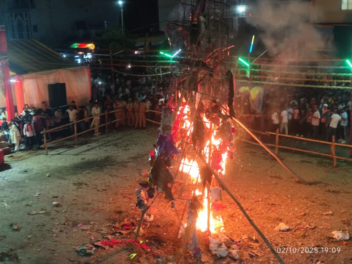 लखना/बकेवर:- नगर लखना में दशहरा पर्व धूमधाम से मनाया गया। रामलीला मैदान में गुरुवार देर रात रावण के पुतले का दहन किया गया। इस दौरान हजारों की संख्या में श्रद्धालु और नागरिक मौजूद रहे। भगवान श्रीराम द्वारा रावण का वध होते ही पूरा मैदान ‘जय श्रीराम’ के जयघोष से गूंज उठा।