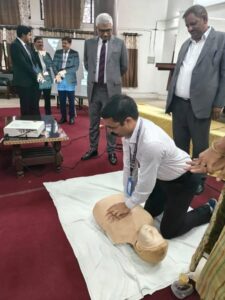 कार्यक्रम की शुरुआत सभी माननीय न्यायाधीशों एवं न्यायालय कर्मचारियों को संबोधित करते हुए आपात स्थितियों में बेसिक लाइफ सपोर्ट (BLS) कौशलों के महत्व पर चर्चा से हुई। विशेषज्ञों ने बताया कि हृदयगति रुकने या सांस बंद होने की स्थिति में सीपीआर तकनीक जीवन बचाने का सबसे प्रभावी तरीका है।