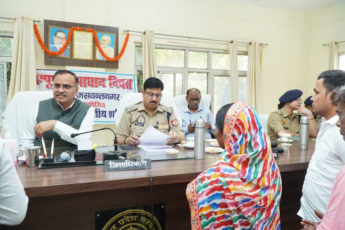 जसवंतनगर तहसील में आयोजित समाधान दिवस के दौरान जिलाधिकारी सुभ्रांत कुमार शुक्ल एवं वरिष्ठ पुलिस अधीक्षक डॉ. कुन्तल किशोर ने संयुक्त रूप से फरियादियों की समस्याएं सुनीं।