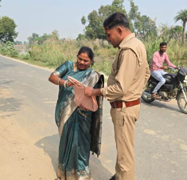 फैंटम मोबाइल पर गश्त कर रहे सिपाही रवि और अजय कुमार को सड़क किनारे एक पर्स मिला, जिसमें पांच लाख रुपये के जेवर, नकदी, दो मोबाइल और जरूरी कागजात थे। पुलिसकर्मियों ने तत्परता दिखाते हुए पर्स को सुरक्षित रख महिला को सौंप दिया।