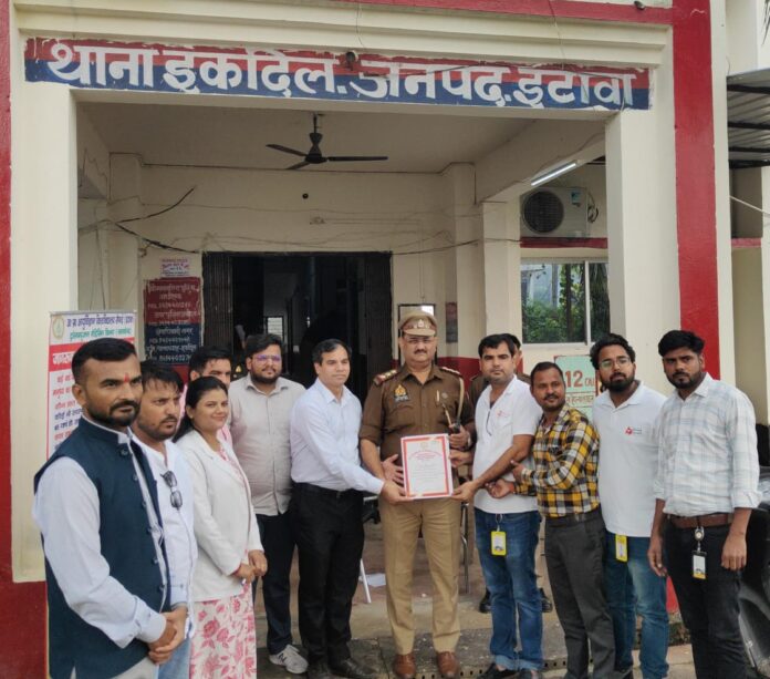 कार्यक्रम के दौरान थाना इकदिल प्रभारी को “रक्तदाता समूह इटावा” की ओर से प्रशस्ति पत्र प्रदान किया गया। इस मौके पर समूह के सदस्य सौरभ परिहार भी उपस्थित रहे।
