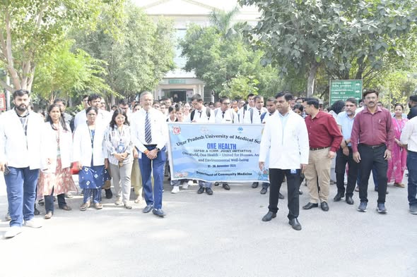 उत्तर प्रदेश आयुर्विज्ञान विश्वविद्यालय (यूपीयूएमएस) के कम्युनिटी मेडिसिन विभाग द्वारा आईएपीएसएम (IAPSM) एवं आईसीएमआर (ICMR) के संयुक्त तत्वावधान में “वन हेल्थ अवेयरनेस रैली” का आयोजन किया गया। इस रैली का उद्देश्य मानव, पशु और पर्यावरणीय स्वास्थ्य के बीच गहरे और परस्पर संबंध को उजागर करना था।