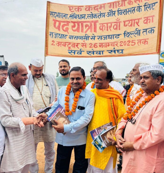 इकदिल:- सत्य प्रतिज्ञ कर्तव्यनिष्ठ प्रशासनिक अधिकारियों के संगठन सत्यमेव जयते के अध्यक्ष वाणिज्य कर विभाग वाराणसी से सेवानिवृत्त उपायुक्त श्यामधर तिवारी के नेतृत्व में यात्रा शुरू की गयी है l आर्यावर्ते सत्यमेव जयते के पदयात्रियों का इकदिल में नेशनल हाइवे पर जोरदार स्वागत किया गया।
