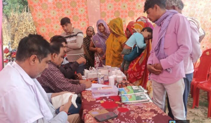 बकेवर:- राजकीय पशु चिकित्सालय बकेवर के अंतर्गत ग्राम पंचायत धर्मपुरा में पंडित दीनदयाल उपाध्याय पशु आरोग्य मेला का आयोजन किया गया। मेले में निशुल्क पशुओं का उपचार कर दवा वितरित की गयी।