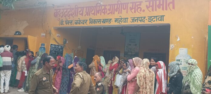 मौसम के खुलते ही डीएपी खाद के लिए किसान खासेपरेशान नजर आ रहे हैं। एक सप्ताह बाद डीएपी खाद के आने के चलते बकेवर के बहुउद्देशीय किसान सेवा प्राथमिक सहकारी समिति पर लम्बी लाइन देखने को मिली जहां महिलाएं व पुरुष किसानों ने सुबह आकर लाइनें लगाई। और इसके बाद बकेवर थाना पुलिस द्वारा पहुंचकर सचिव राजीव गोयल के द्वारा डीएपी खाद की बोरियां बितरित करनी शुरु कर दी।