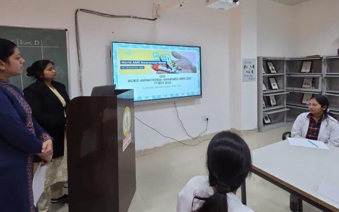 प्रतियोगिता में सभी प्रतिभागियों ने उत्साहपूर्वक हिस्सा लेते हुए एएमआर विषय से संबंधित महत्वपूर्ण प्रश्नों का उत्तर दिया। क्विज़ का उद्देश्य चिकित्सा विद्यार्थियों में बढ़ती एंटी-माइक्रोबियल रेसिस्टेंस की समस्या के प्रति जागरूकता बढ़ाना और वैज्ञानिक दृष्टिकोण को प्रोत्साहित करना था।