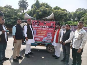 सपा पार्टी कार्यालय इटावा में शुक्रवार को SIR प्रचार जागरूकता वाहन को सांसद जितेंद्र दोहरे एवं सपा जिलाध्यक्ष प्रदीप शाक्य ‘बबलू’ ने अपने पदाधिकारियों के साथ हरी झंडी दिखाकर जनपद भर में रवाना किया। यह अभियान आम जनमानस में SIR के संबंध में जागरूकता बढ़ाने के उद्देश्य से शुरू किया गया है।