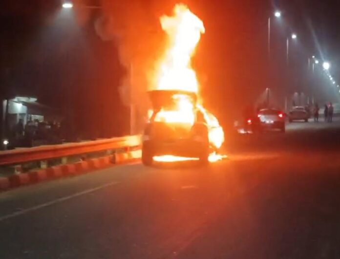 आगरा–कानपुर नेशनल हाइवे पर मंगलवार को उस समय बड़ा हादसा टल गया जब तेज रफ्तार से जा रही क्रेटा कार में अचानक भीषण आग लग गई। घटना के दौरान कार में सवार लोग समय रहते बाहर निकल आए, जिससे एक बड़ा हादसा टल गया और सभी की जान बच गई।