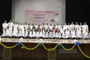 समारोह के दौरान विद्यार्थियों ने चरक शपथ लेकर चिकित्सा सेवा के प्रति समर्पण, ईमानदारी और मानव कल्याण के मार्ग पर अग्रसर रहने का संकल्प दोहराया।