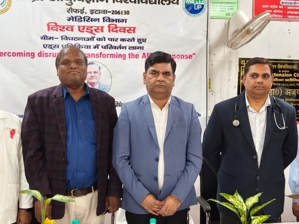 यूपीयूएमएस, सैफई के जनरल मेडिसिन विभाग द्वारा ओपीडी परिसर में विश्व एड्स दिवस के अवसर पर एक जागरूकता कार्यक्रम आयोजित किया गया। कार्यक्रम का उद्देश्य एचआईवी/एड्स के प्रति जागरूकता बढ़ाना, मिथकों को दूर करना और समाज में वैज्ञानिक दृष्टिकोण को बढ़ावा देना रहा। इस वर्ष विश्व एड्स दिवस की थीम थी — “बाधाओं को पार करते हुए, एड्स प्रतिक्रिया में बदलाव लाना”।