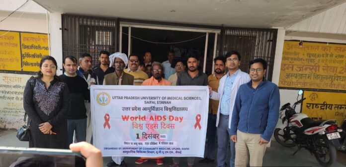 यूपीयूएमएस के सामुदायिक चिकित्सा विभाग ने 1 दिसंबर 2025 को विश्व एड्स दिवस के अवसर पर विविध और प्रभावी जनजागरूकता गतिविधियों का आयोजन किया। अभियान का उद्देश्य एड्स से जुड़ी गलत धारणाओं को दूर करना, वैज्ञानिक जानकारी पहुँचाना और जोखिमग्रस्त समुदायों को सुरक्षित व्यवहार के प्रति जागरूक करना था।