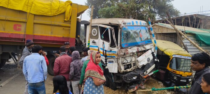 आगरा–कानपुर नेशनल हाईवे पर इकदिल कस्बे के पास शनिवार को एक बड़ा हादसा होते-होते टल गया। अनपरा से कोयला लादकर हरियाणा जा रहा एक डंपर अचानक टायर फटने के कारण अनियंत्रित हो गया। तेज धमाके के साथ टायर फटते ही डंपर डिवाइडर पर चढ़ गया और दूसरी लेन में पहुंचकर सड़क किनारे खड़े एक खाली ऑटो से टकरा गया। हादसे के बाद डंपर कानपुर जाने वाली लेन पर तिरछा खड़ा हो गया, जिससे यातायात पूरी तरह ठप हो गया। यह घटना शनिवार दोपहर करीब 12:00 बजे की बताई जा रही है।