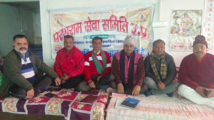 इकदिल:- परशुराम सेवा समिति उ.प्र. (रजि.) की एक आवश्यक बैठक रविवार को प्रदेश महामंत्री विनय कुमार द्विवेदी के आवास चांदनपुर इकदिल में संपन्न हुयी । बैठक की अध्यक्षता समिति के प्रदेश अध्यक्ष डॉ.सुशील सम्राट ने की l संचालन प्रदेश महामन्त्री जयशिव मिश्रा ने किया l प्रदेश अध्यक्ष डॉ.सुशील सम्राट ने कहा कि शीघ्र ही प्रदेश कार्यसमिति का विस्तार किया जायेगा l