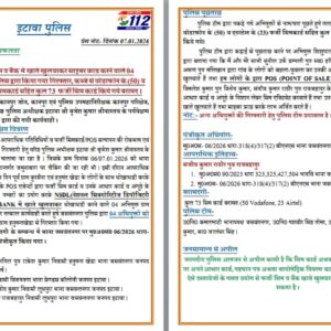 वरिष्ठ पुलिस अधीक्षक इटावा ने आमजन से अपील की है कि किसी भी अनजान कॉल, लिंक या संदेश से सावधान रहें तथा अपने दस्तावेज किसी के साथ साझा न करें। साइबर अपराध से संबंधित किसी भी सूचना की तत्काल पुलिस को जानकारी दें।