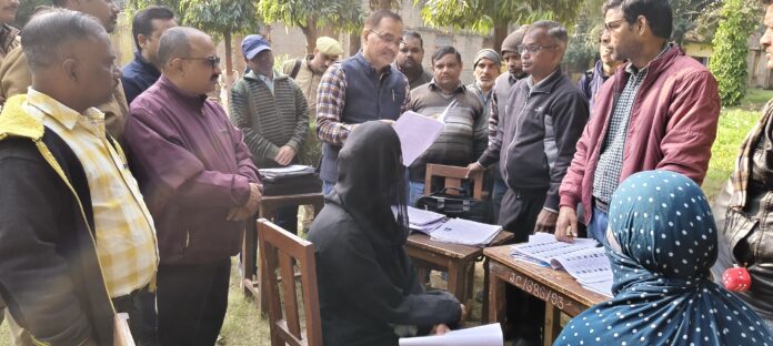 बकेवर:- रविवार को बकेवर नगर के जनता कालेज परिसर में बीएलओ ने शिविर लगाकर नये मतदाताओं के फार्म जमा कराये। जिसका जिलाधिकारी इटावा द्वारा दोपहर में पहुंचकर निरीक्षण किया गया। जहां उन्होंने बूथ संख्या 229 232 बूथ शास्त्री नगर किदव ई नगर के बीएल ओ के मतदाताओं के बनने के प्रपत्रों को देखा वहां मौजूद एक 40 वर्षीय शाकिर व उसकी पत्नी नगमा का लेट बोट बनने की जानकारी पत्नी नगमा से ली। तो उन्होंने नया मकान बनाकर रहने की बात कही।स्वयं का मायका सब्जी मंडी के पास रायबरेली है। वह डिटेल भी संलग्न की गयी है।