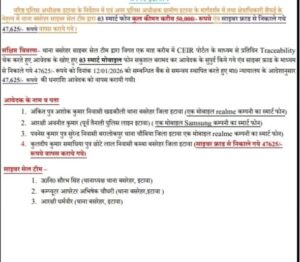 साइबर सेल टीम ने कार्यवाही करते हुए 03 खोए हुए स्मार्टफोन, जिनकी कुल कीमत लगभग 50,000 रुपये है, बरामद कर संबंधित पीड़ितों को वापस कराए। इसके साथ ही साइबर फ्रॉड के मामलों में ठगी गई 47,625 रुपये की धनराशि भी सफलतापूर्वक पीड़ितों के खातों में वापस कराई गई।