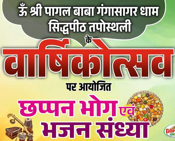 उक्त आशय की जानकारी ऊँ श्री पागलबाबा गंगासागर धाम मोढी के मुख्य न्यासी व कार्यक्रम संयोजक श्याम सुन्दर चौरसिया ने देते हुए बताया कि वार्षिकोत्सव के अवसर पर 18 जनवरी दिन रविवार को अपरान्ह्र 1 बजे से छप्पन भोग एवं भजन संध्या का कार्यक्रम आयोजित किया जायेगा। उन्होंने नगर व क्षेत्र के समस्त धर्मप्रेमियों से उक्त धार्मिक अनुष्ठान में सहभागिता करने की अपील की है।