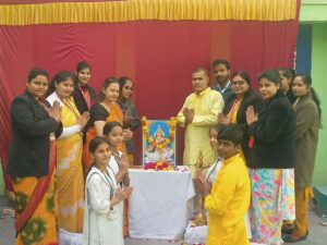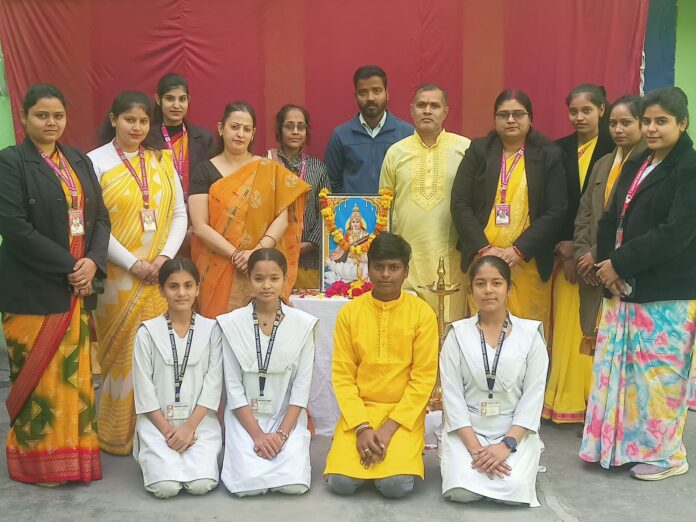 कार्यक्रम की शुरुआत विद्यालय की छात्राओं द्वारा मधुर सरस्वती वंदना से की गई, जिससे पूरा वातावरण भक्तिमय हो गया। इस अवसर पर विद्यार्थियों, शिक्षकगण एवं समस्त विद्यालय स्टाफ ने सहभागिता करते हुए माँ सरस्वती से ज्ञान, विवेक, सद्बुद्धि एवं उज्ज्वल भविष्य की कामना की।