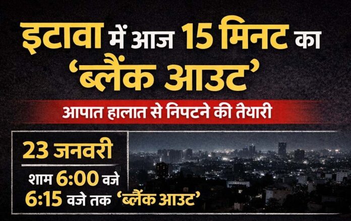 शुक्रवार, 23 जनवरी को इटावा जनपद में शाम 6:00 बजे से 6:15 बजे तक ‘ब्लैक आउट’ किया जाएगा। यह अभ्यास युद्ध जैसी आपात परिस्थितियों से निपटने की तैयारियों को परखने के उद्देश्य से जिला प्रशासन द्वारा आयोजित किया जा रहा है।