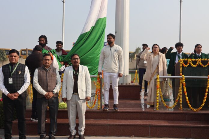 26 जनवरी को दिल्ली पब्लिक स्कूल इटावा में 77वां गणतंत्र दिवस अत्यंत उत्साह, उल्लास एवं सम्मान के साथ मनाया गया। देशभक्ति और समर्पण की भावना से ओत-प्रोत छात्र-छात्राएं एवं विद्यालय स्टाफ एकत्रित होकर राष्ट्र को नमन करने के लिए उपस्थित हुए। कार्यक्रम का शुभारंभ विद्यालय की सम्मानित प्रधानाचार्या भावना सिंह द्वारा राष्ट्रीय ध्वज फहराने के साथ हुआ, जिसके पश्चात राष्ट्रगान का सामूहिक गायन किया गया। पूरे विद्यालय परिसर में सभी ने एक साथ खड़े होकर इस पावन दिवस के महत्व को नमन किया।