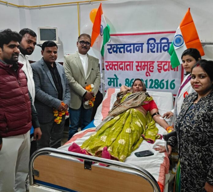 देश के 77वें गणतंत्र दिवस के शुभ अवसर पर रक्तदाता समूह के सदस्यों द्वारा राधा स्वामी हॉस्पिटल में एक विशेष रक्तदान शिविर का आयोजन किया गया। इस शिविर में देशभक्ति के जज्बे के साथ डॉ. साक्षी पोरवाल, प्रियंका यादव, शालिनी, मंजेश कुमारी, सुमन यादव, डॉ. बृजेश प्रजापति, असित यादव, अंकित, सौरभ त्रिपाठी, अभिषेक भदौरिया, विपिन यादव, सतेंद्र यादव, देवेंद्र चौहान, अमित गुप्ता एवं राहुल चौधरी ने स्वेच्छा से रक्तदान कर देशहित में अपना योगदान दिया।