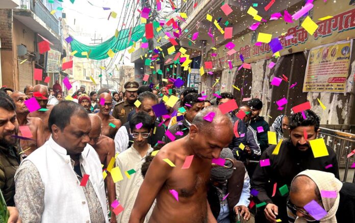 इस अवसर पर श्री पार्श्वनाथ दिगंबर जैन मंदिर, नशिया जी से भव्य मंगल प्रवेश एवं आगवानी जुलूस निकाला गया। जुलूस नशिया जी मंदिर से प्रारंभ होकर टिक्सी मंदिर, बजरिया, छैराहा–पचराहा, सीओ सिटी चौराहा, तिकोनिया, पक्की सराय, नगरपालिका चौराहा, रंगलाल चौराहा होते हुए महावीर मार्ग स्थित लालपुरा जैन मंदिर पहुँचा।
