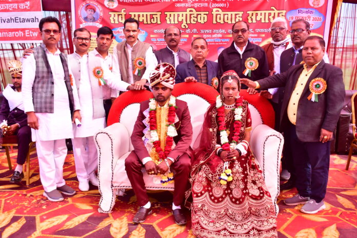 इटावा। महात्मा ज्योतिबा राव फूले जन कल्याण समिति के तत्वावधान में सर्व समाज सामूहिक विवाह समारोह दिनांक 19 फरवरी 2026, गुरुवार को के.पी. उत्सव गार्डन, कुम्हावर रोड पचावली इटावा में भव्य रूप से संपन्न कराया गया। समारोह में लगभग दो दर्जन जोड़ों का विवाह वैदिक रीति-रिवाजों के साथ संपन्न हुआ।